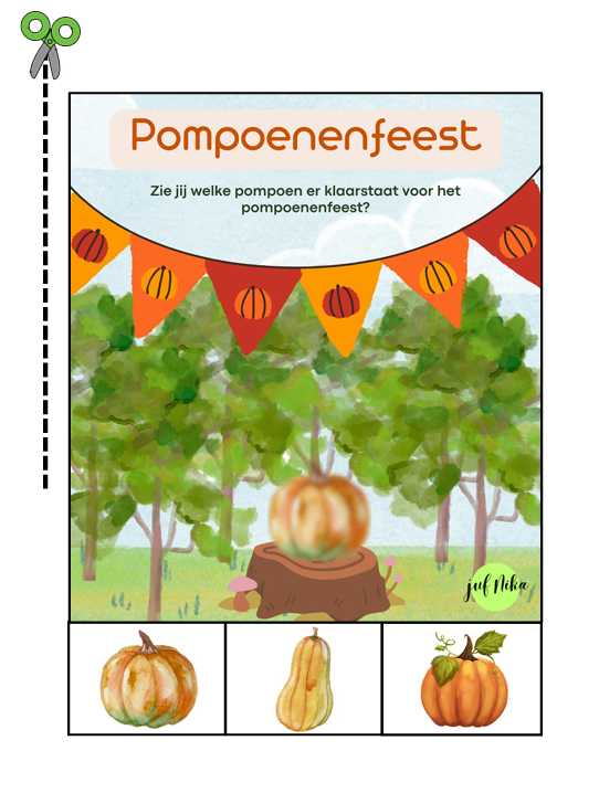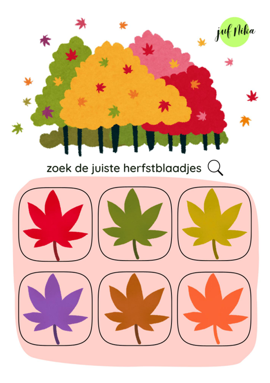 Kleuters leren vormen en kleuren herkennen, verschillen opmerken en goed kijken aan de hand van vrolijke herfstfiguren.