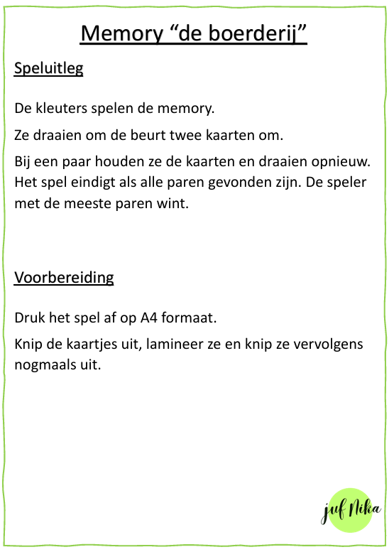 Laat je kleuters kennismaken met de boerderij op een speelse manier! Met dit kleurrijke memory ontdekken kinderen verschillende boerderijdieren en voeding terwijl ze hun geheugen trainen.