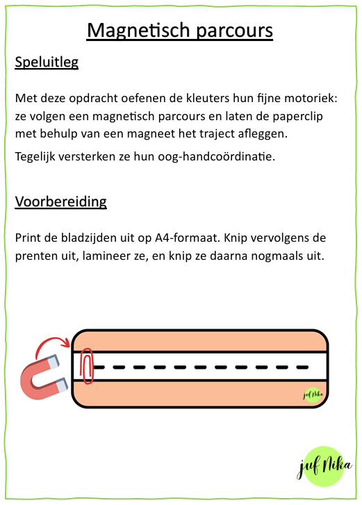 Zo experimenteren ze zelfstandig of begeleid, versterken ze hun fijne motoriek en oog-handcoördinatie, en leren ze verantwoord omgaan met magneten.