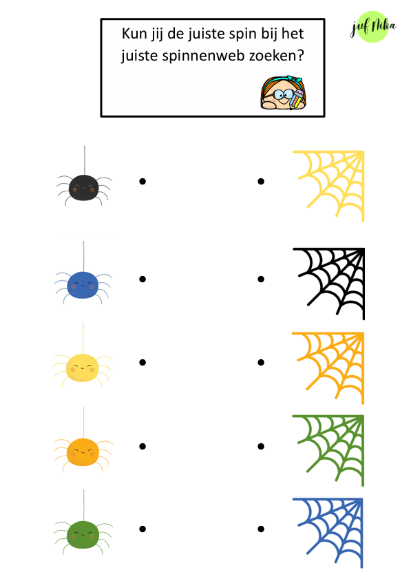 Laat kleuters spelenderwijs hun fijne motoriek én kleurherkenning oefenen met deze vrolijke schrijfpatroonkaarten. De grappige spinnen kruipen over lijnen, bochten en kronkels: kan jij ze helpen naar hun spinnenweb?